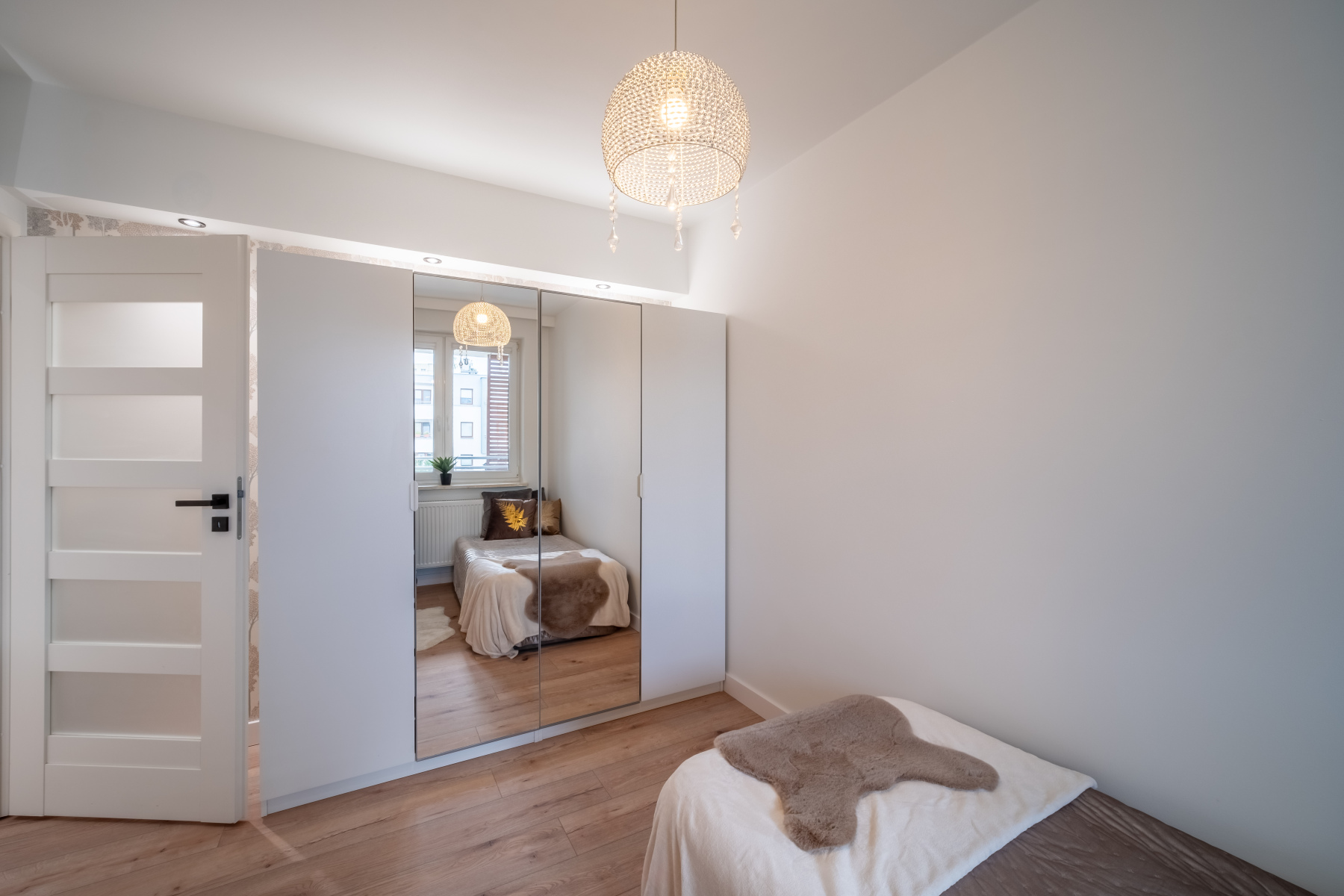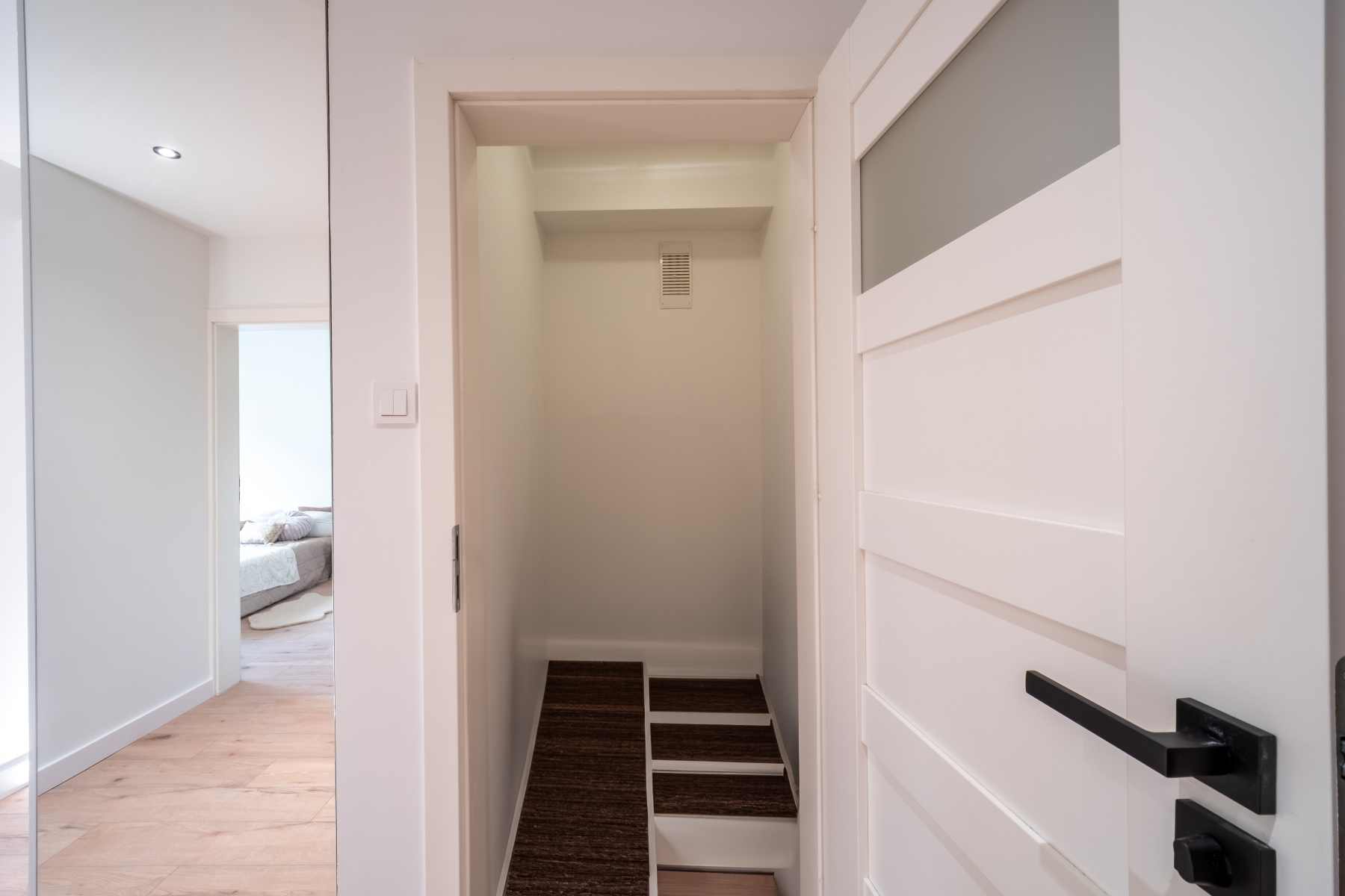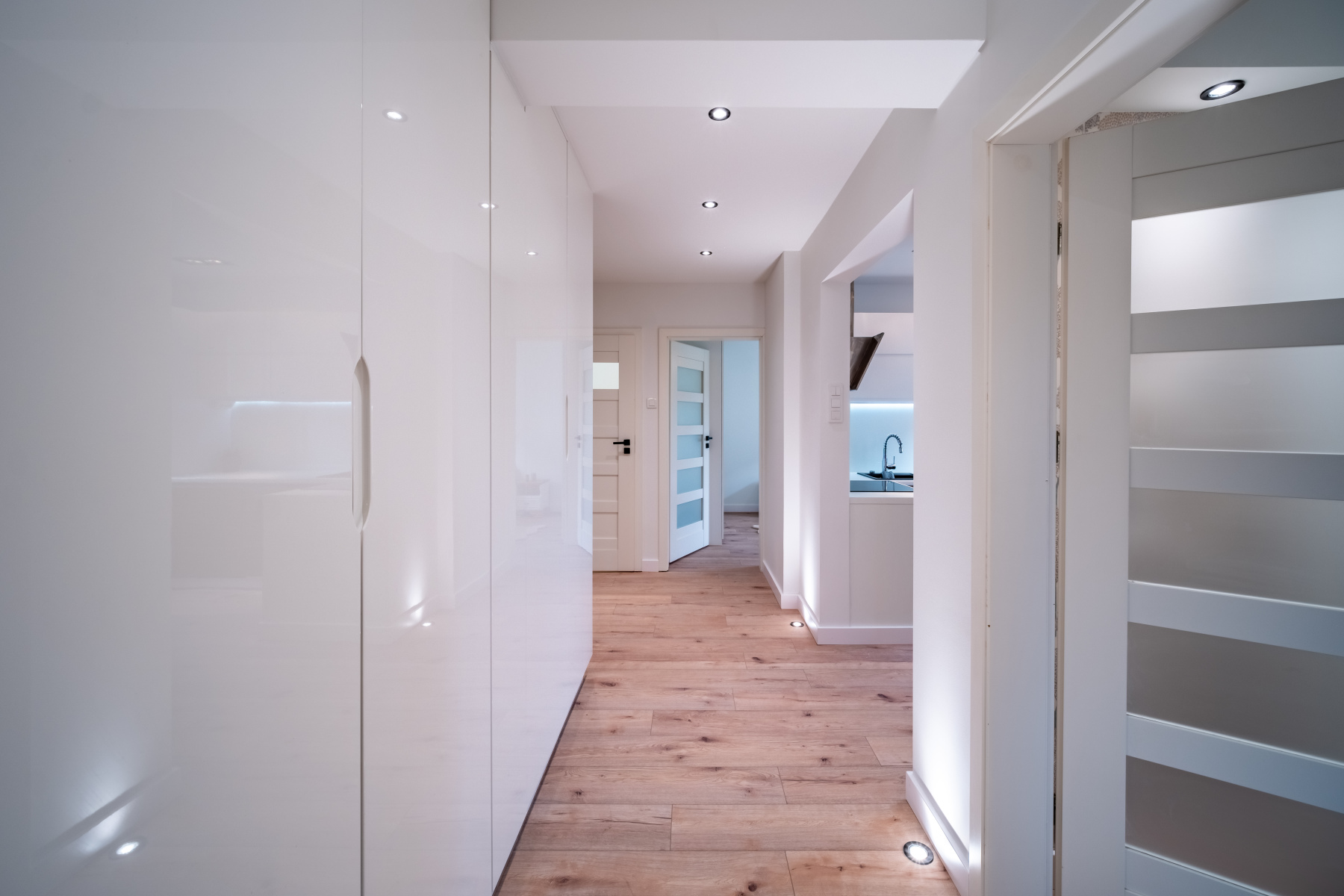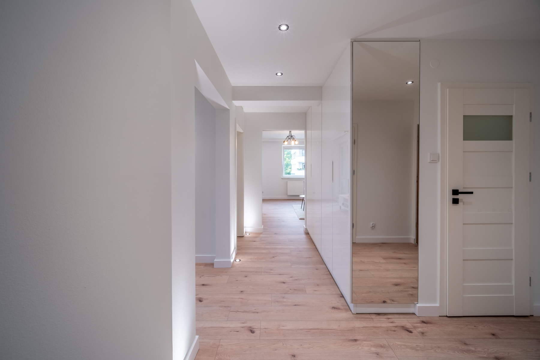 - Szeroki przedpokój z pojemną szafą na wymiar